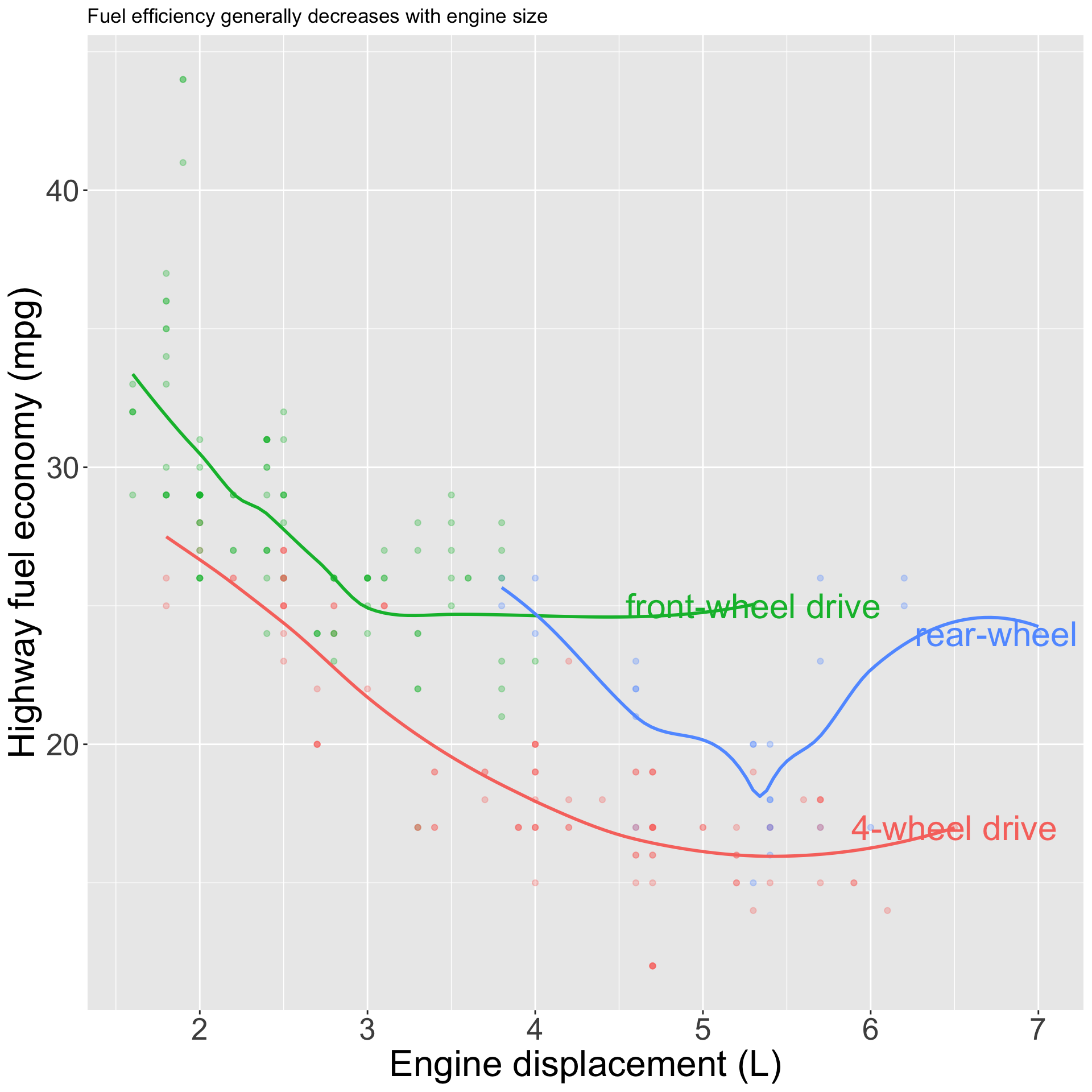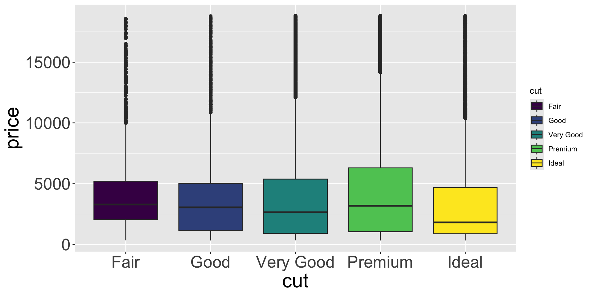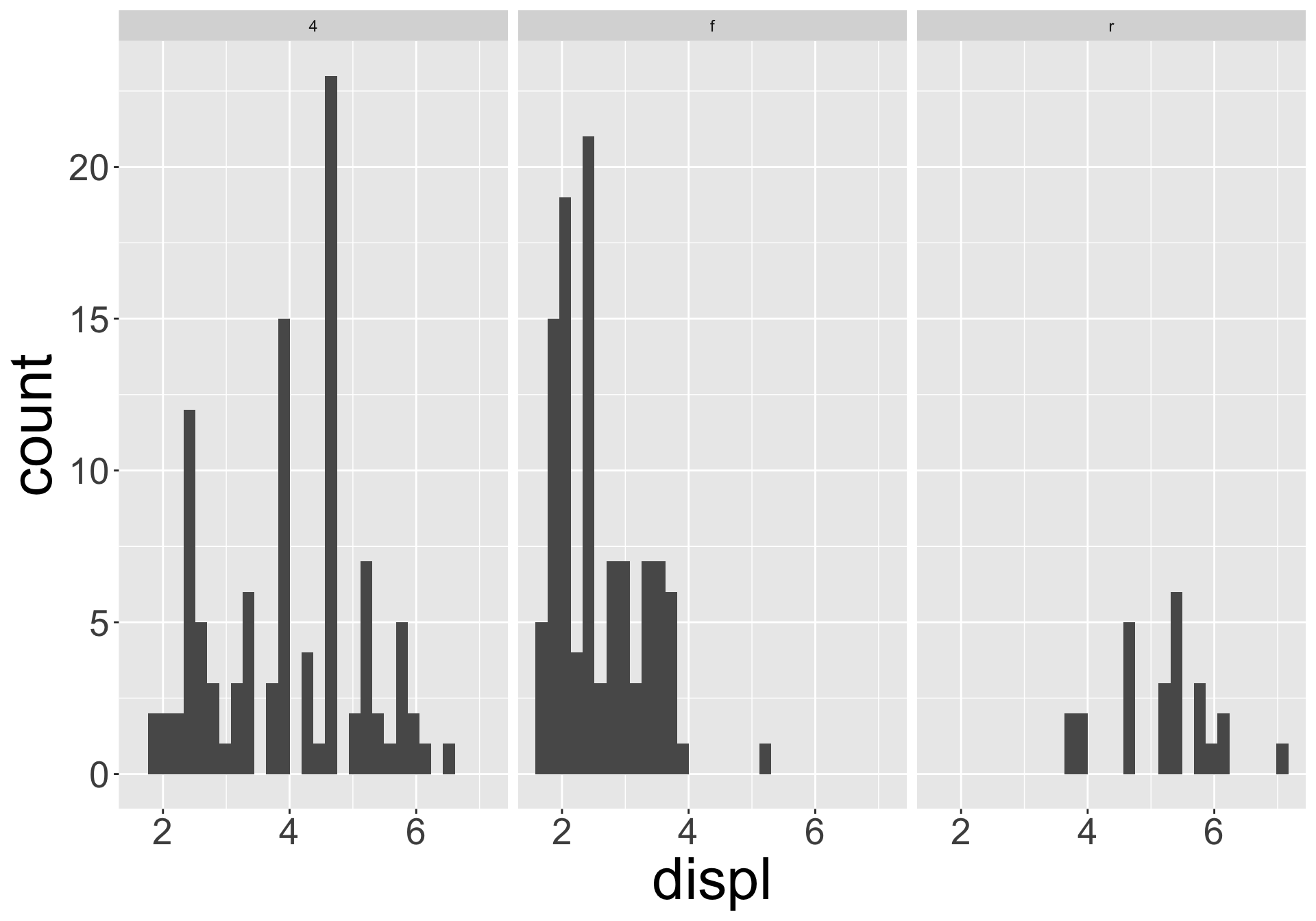 geom_bar(): bar chart; geom_line(): lines; geom_boxplot(): boxplot; geom_point(): scatterplot
