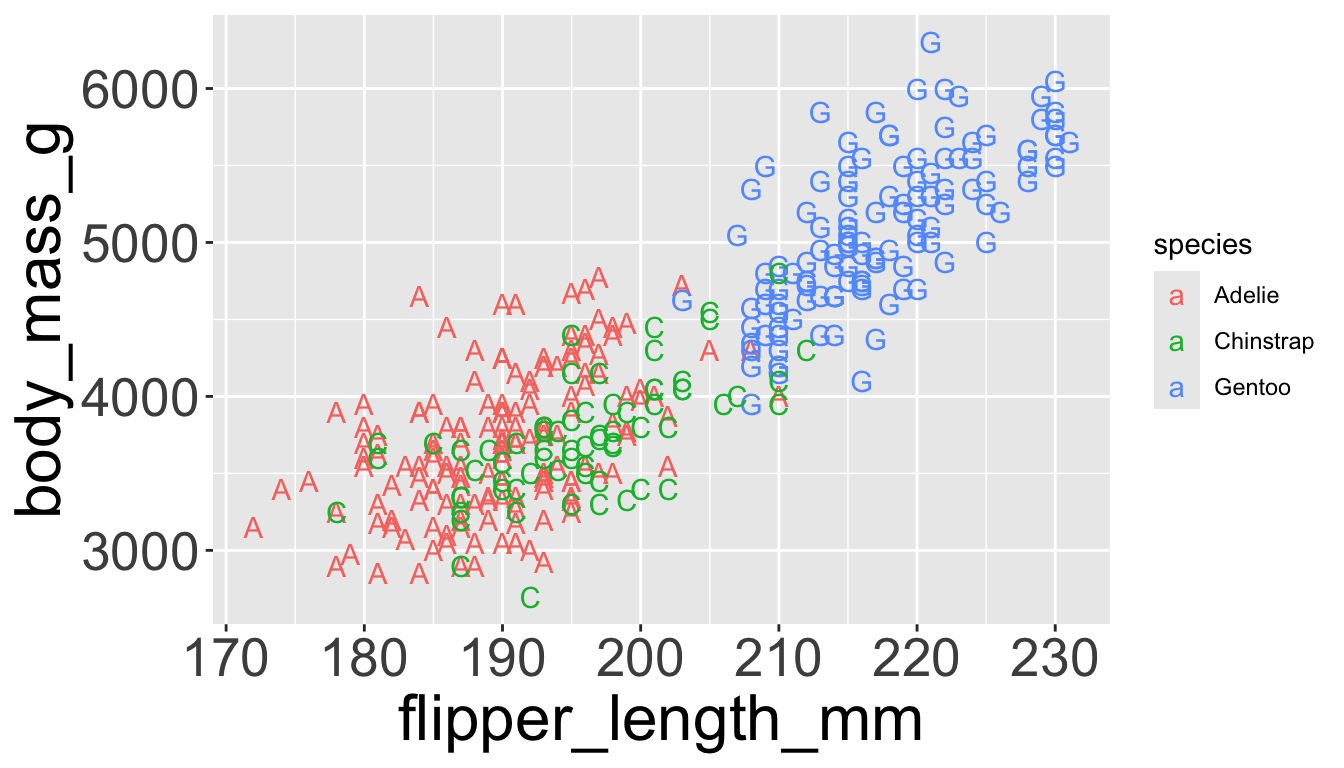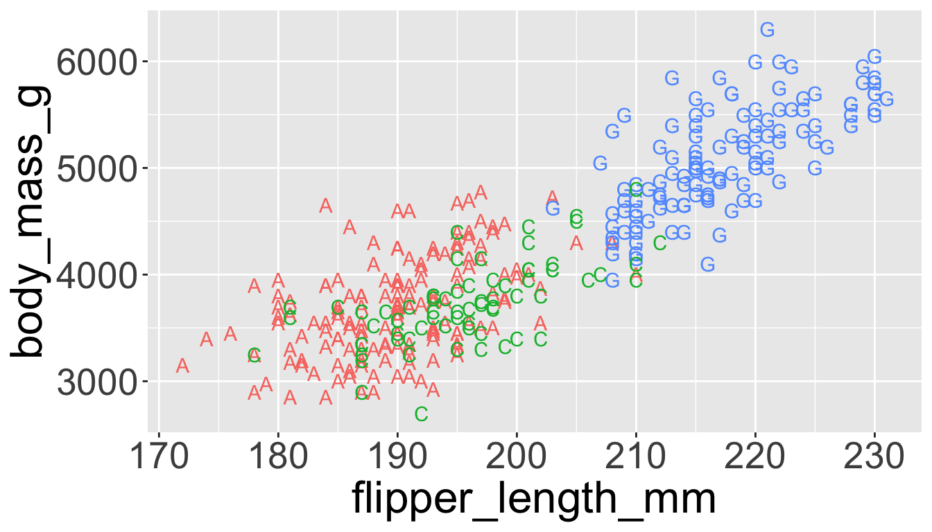 e.g. we can differentiate penguin species via colors