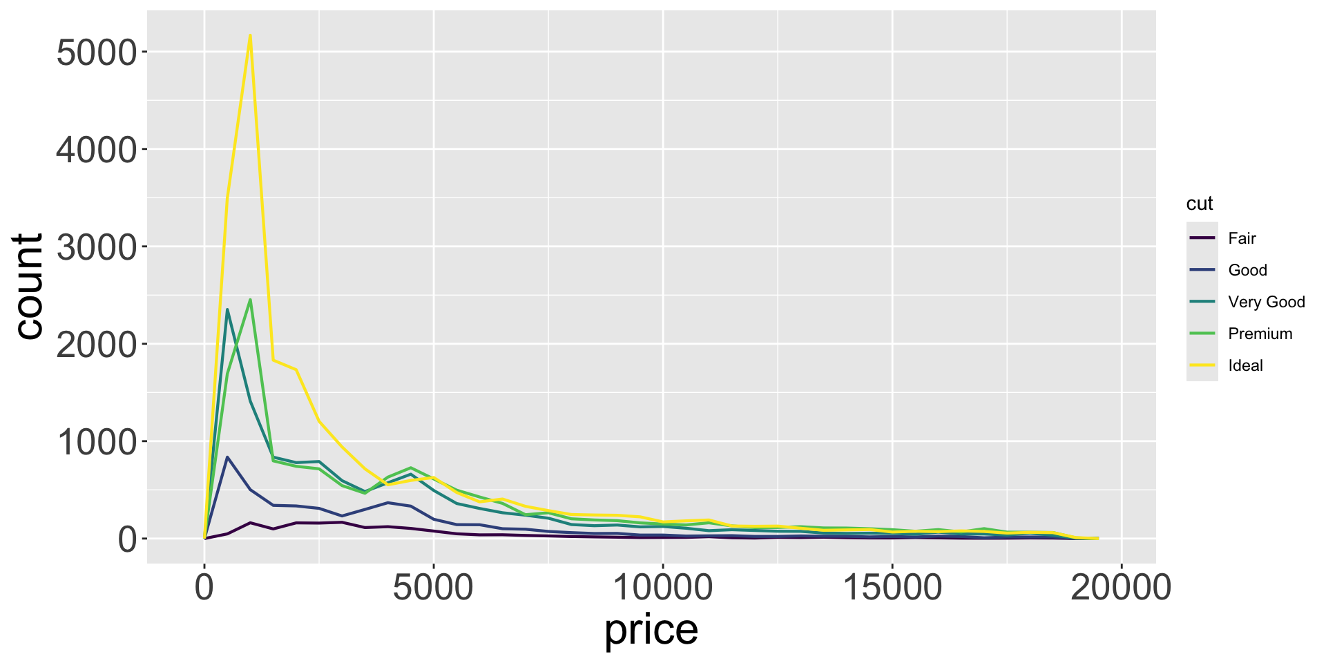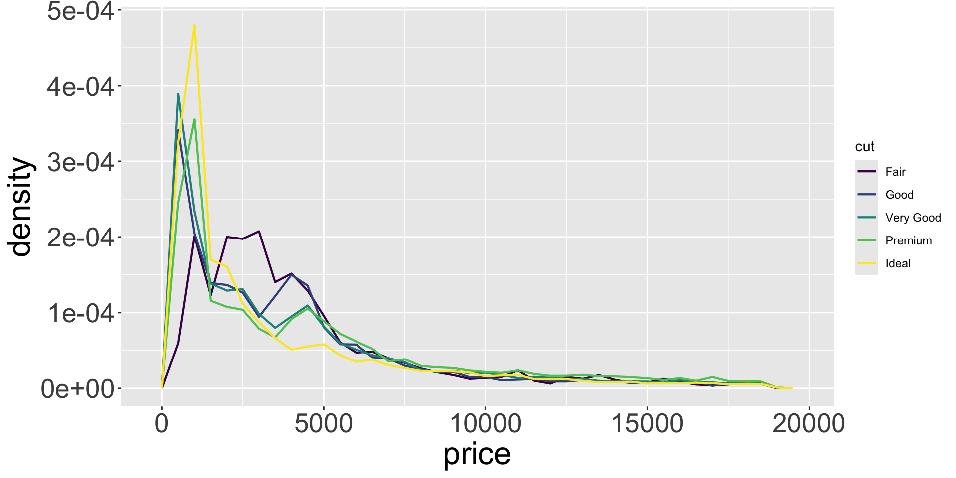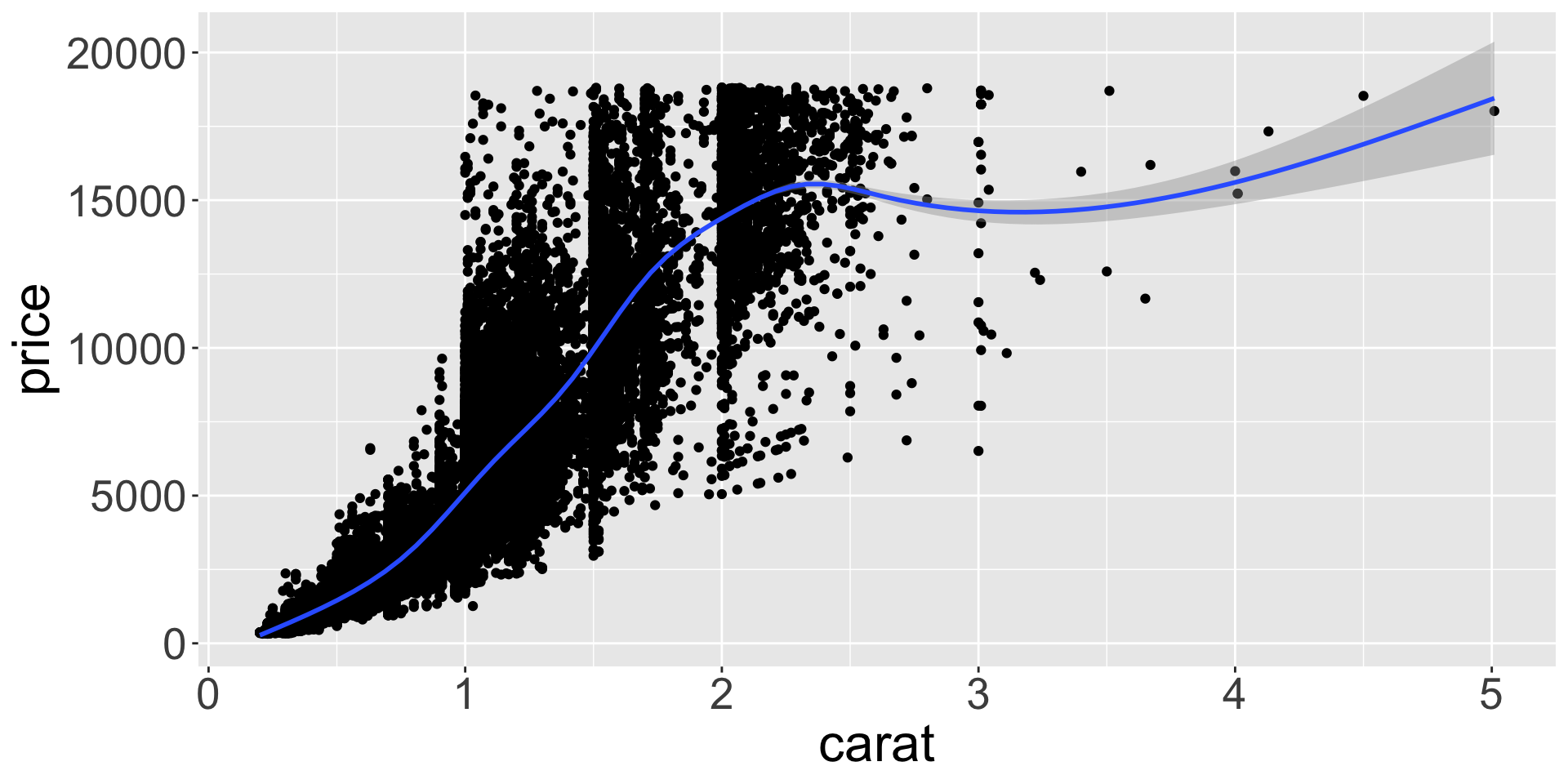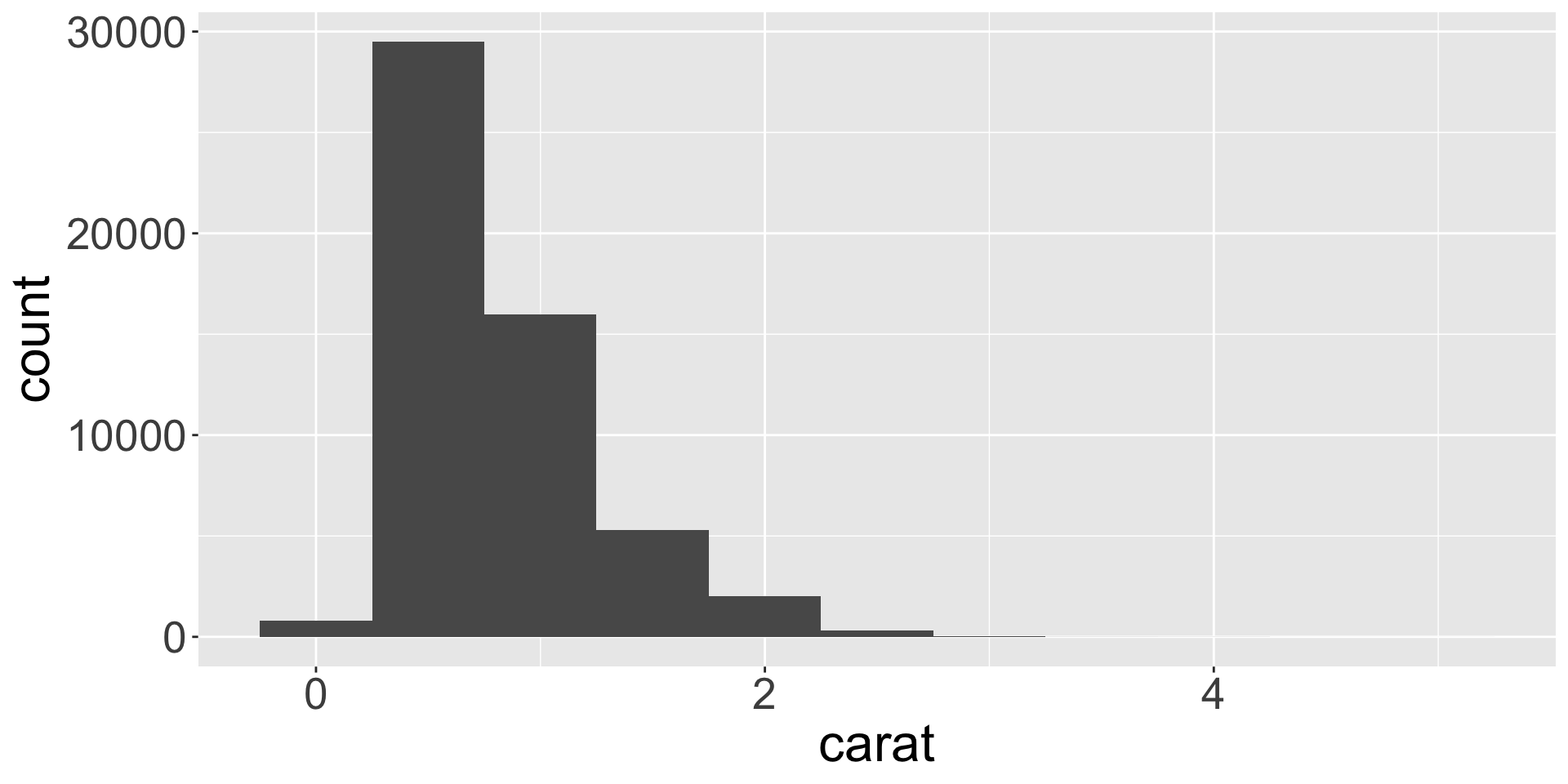 Let’s explore the distribution of weights (carat) of the ~50k diamonds from diamonds dataset.
