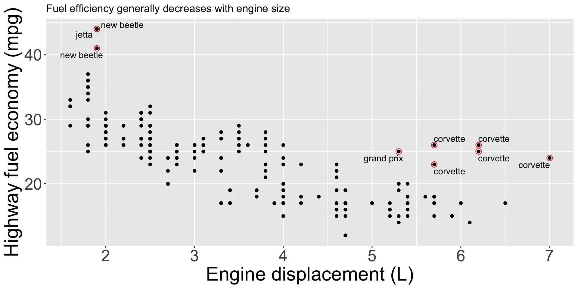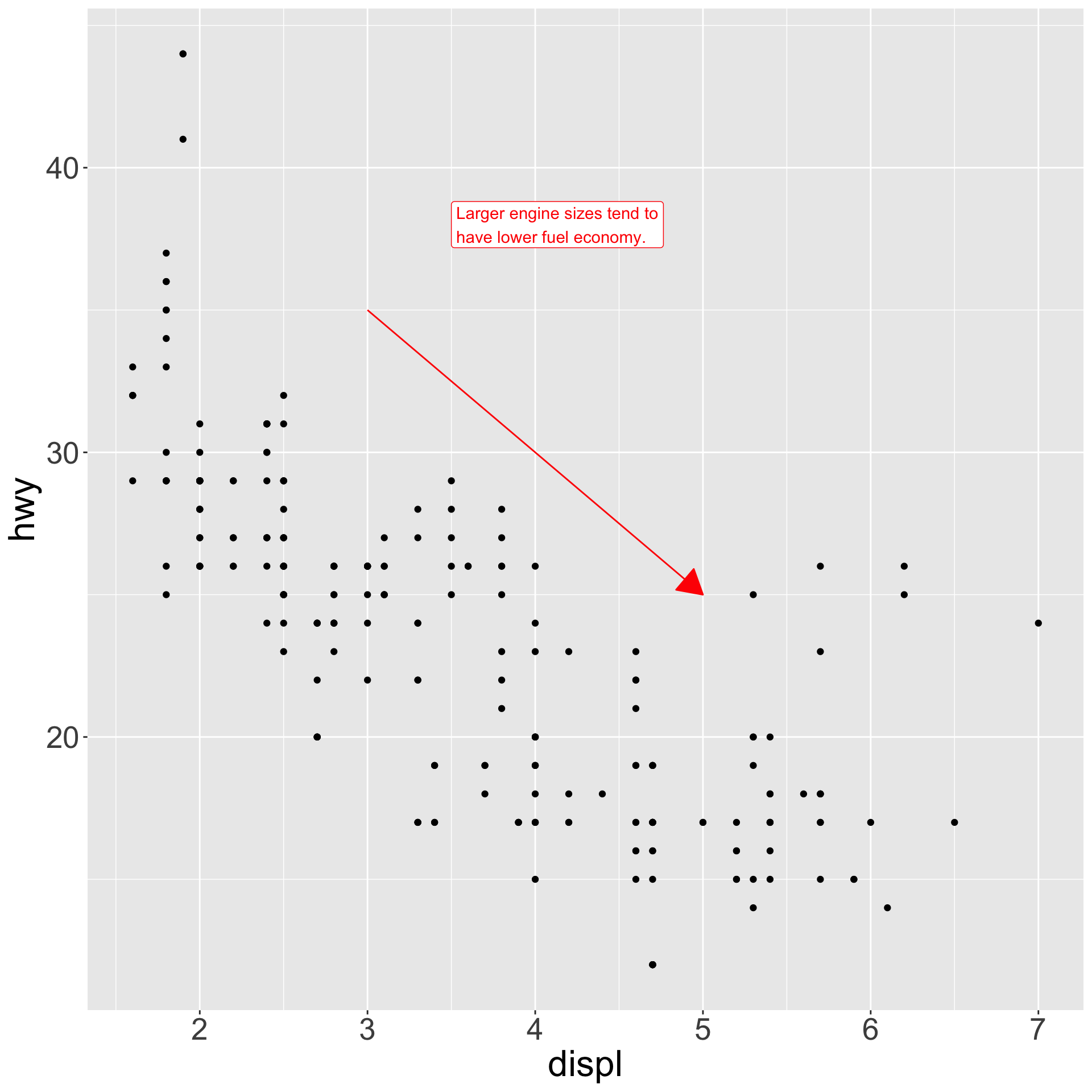 ggplot(data = mpg) creates an empty plot.