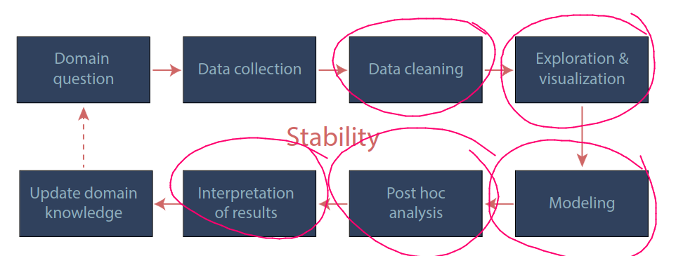 Data science life cycle (Yu and Kumbier, PNAS’19)